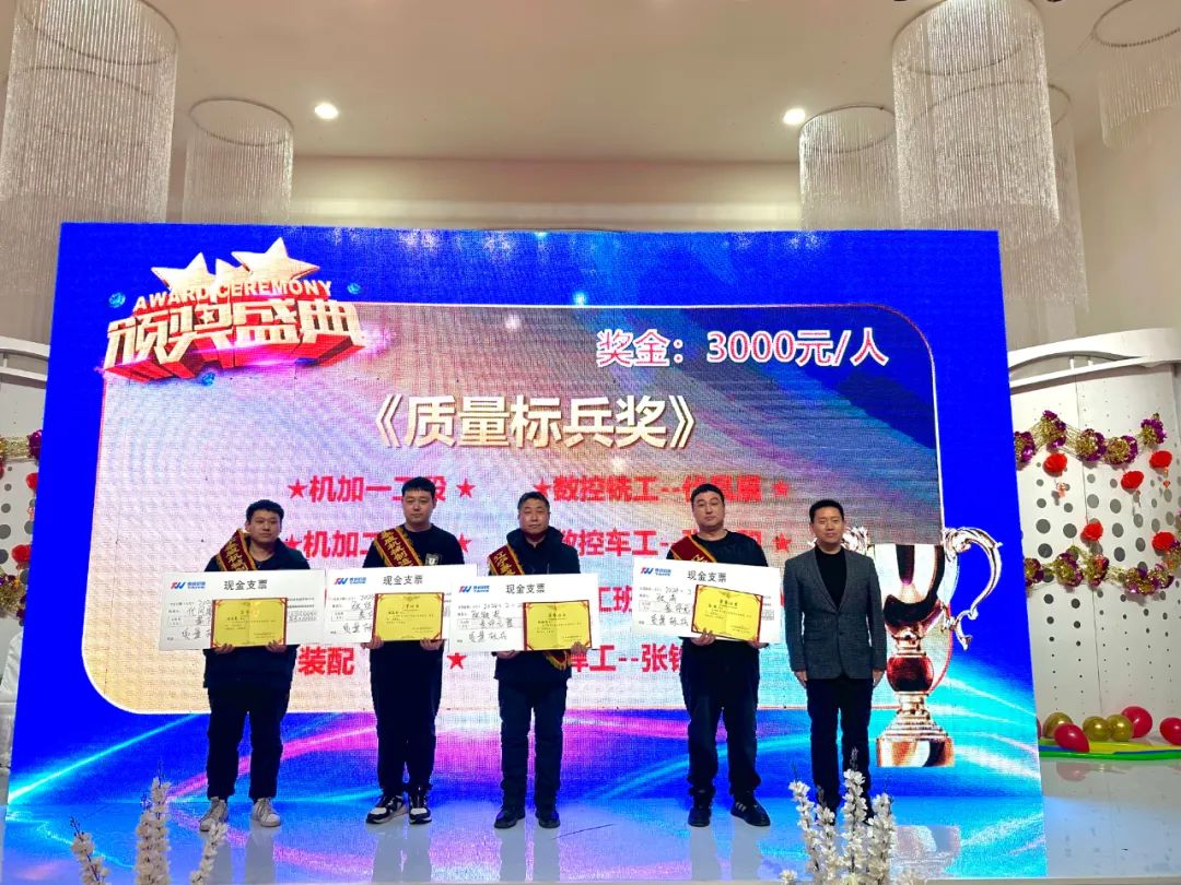 聚焦榮耀加冕,見證榜樣力量。晚會開始前,公司對2023-2024年度進(jìn)步青年、優(yōu)秀員工、質(zhì)量標(biāo)兵以及首屆功勛員工進(jìn)行表彰,感謝他們?yōu)閷?shí)現(xiàn)公司高質(zhì)量發(fā)展做出的積極貢獻(xiàn)。一本本榮譽(yù)證書不僅是對他們工作的肯定,更是對泰威人實(shí)干精神的傳承和弘揚(yáng)。通過樹立先進(jìn)典型,發(fā)揚(yáng)榜樣精神,進(jìn)一步增強(qiáng)了全體泰威人的凝聚力和競爭力。頒獎結(jié)束后,公司總經(jīng)理徐剛先生發(fā)表新年致辭,展望2024年公司發(fā)展前景。