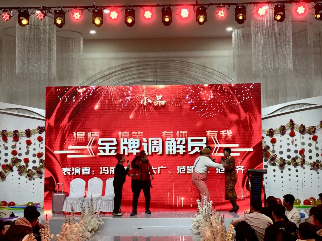 薈萃星光,觥籌熠熠,隨著頒獎典禮的結(jié)束,晚會在瀟灑的開場舞《驍》中正式拉開帷幕,隨后,公司各部門工作人員為大家?guī)砹宋乃囇莩觯枨莩侗啃『ⅰ?、《海芋戀》、《著魔》,黑管?dú)奏《上海灘》,舞蹈表演《科目三》、《桃花朵朵開》,小品節(jié)目《四大才子招親》、《金牌調(diào)解員》,大合唱《壯志在我胸》,一段段精彩紛呈的節(jié)目收獲了臺下觀眾源源不斷的掌聲與歡呼聲,展現(xiàn)了泰威人蓬勃向上的青春風(fēng)采。其中,小品《金牌調(diào)解員》的演員們,憑借著精湛、搞笑的演技,得到了全場觀眾們的認(rèn)可,小品被評為全場最佳節(jié)目。